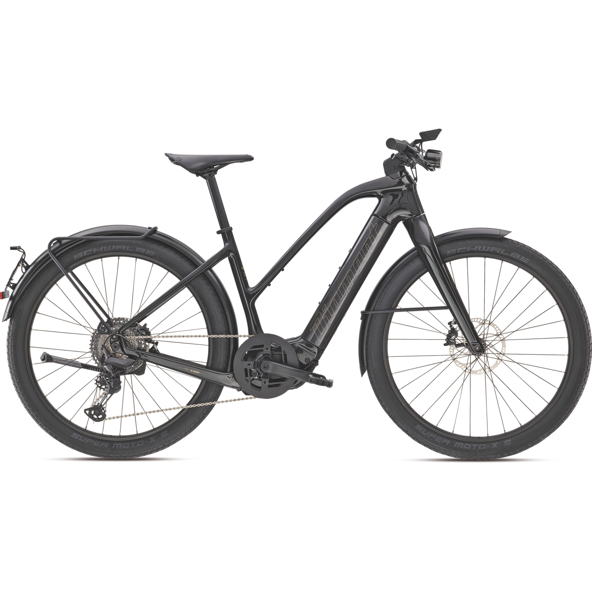 Der innovative OLCV-Carbon-Rahmen mit integrierter Batterie ist der Kern des Zouma Supreme+. Den Bosch Performance Speed-Motor versorgt ein großer Akku mit 625Wh – Range Boost-Technologie erlaubt nachträgliches Aufrüsten auf bis zu 1125Wh. Supernova-Beleuchtung, eine komplette Shimano XT 12-Gang-Gruppe, Carbon-Lenker und Brooks-Sattel runden die hochwertige Ausstattung ab. Die Speed-Version mit bis zu 45km/h integriert die Hupe unauffällig im Tretlager.