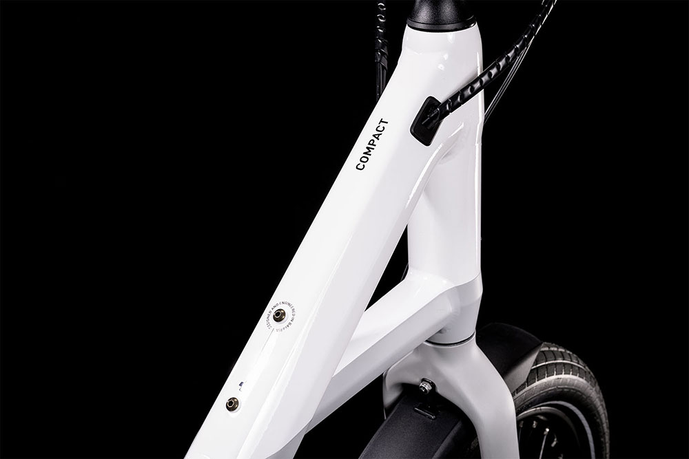 RAHMEN Cube Compact Hybrid 500 black´n´sparkorangeWir bei CUBE wissen: Die einfachste Lösung ist oftmals die beste. Und weil das so ist, hat der Compact Hybrid Rahmen ein verstrebtes Unterrohr. Elegant im Look, steif und stabil, macht es das Auf- und Absteigen superkomfortabel und hat sogar einen praktischen Tragegriff. Das lange Steuerrohr sorgt für ein sicheres, präzises Lenkverhalten. Für kraftvollen Vortrieb zeichnet ein geschmeidig arbeitender Bosch Motor verantwortlich, der formschön in das Unterrohr integriert wurde. Der Akku hinter dem Sitzrohr ist weder dem Fahrer noch dem Gepäck im Weg. Und weil sich Sattel und Lenker schnell und einfach verstellen lassen, kann man das Bike individuell an die Körpergröße des Fahrers anpassen. Der optionale Frontgepäckträger sorgt für noch mehr Flexibilität wenn weiteres Hab und Gut unbedingt mit muss. Kurz: ein cooler Allrounder zum Pendeln, Shoppen, Campen und Entdecken.