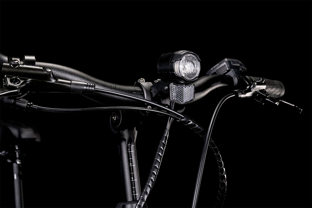 Selbstverständlich haben wir auch an das entsprechende Zubehör gedacht: ein Seitenständer für einfaches Abstellen; Schutzbleche, die Jacke wie Hose trocken und sauber halten; und ein Beleuchtungssystem, damit man immer optimal sieht und gesehen wird. Leistungsstarke hydraulische Scheibenbremsen packen beherzt zu und bringen das Bike auch bei Nässe zuverlässig zum Stehen. Und sein Lenker lässt sich schnell und unkompliziert auf die gewünschte (bequeme) Sitzposition einstellen. Da fragt man sich, wie man in der City je ohne das Compact Hybrid klargekommen ist!