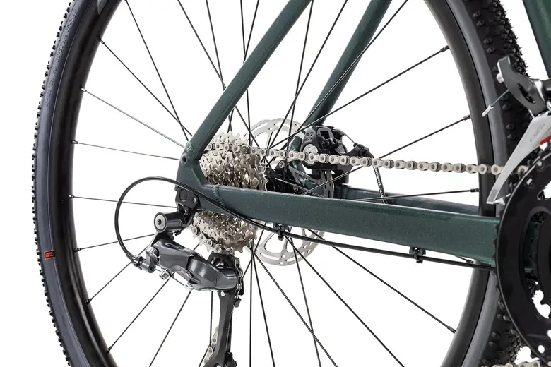 Die Scott Gravel-Geometrie bietet eine komfortable Langstreckensitzposition und Platz für die Verwendung von breiten Gravel-Reifen. Hier bekommst du Schwalbe G-One Bite Performance Reifen. Mit der Shimano Claris Kettenschaltung besitzt dieses Gravelrad 16 Gänge mit ordentlicher Übersetzungsbandbreite. Die 8-fach Kassette bietet eine Entfaltung von 11-32 Zähnen. Solide verzögern die seilzugbetätigten Tektro Scheibenbremsen samt ihrer 160 Millimeter messenden Rotoren.